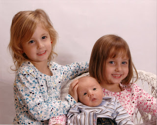 Yes, our little man is home! We were discharged this afternoon around 1:30pm. We didn't tell the girls so they got a big surprise when they came in from the back yard to find baby brother home. He is settling in. It was a bit crazy for a while. The girls were "helping" and just wanted to come kiss him every few minutes (CUTE!). Poor guy was all confused. Now that it is evening he is settling. I hope he is this good of a sleeper during the night! I wouldn't mind a good 3 hour stretch of sleep haha.